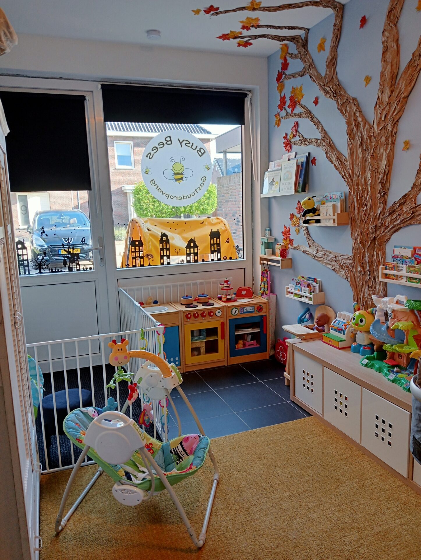 Om te starten als gastouder moet een huis aan bepaalde eisen voldoen. “In Eindhoven had ik de opvang gewoon in mijn eigen woonkamer. Dat was prima voor dat moment maar mijn eigen kinderen worden ouder en krijgen behoefte aan een eigen plekje. Toen we naar een ander huis zochten, was mijn wens om daar een aparte ruimte te hebben voor de opvang. Dat is prettig want dan kun je alle spullen laten liggen en heeft mijn eigen gezin ook hun eigen plek.”